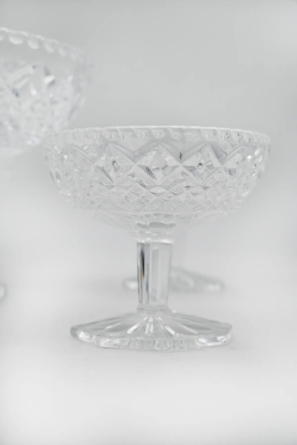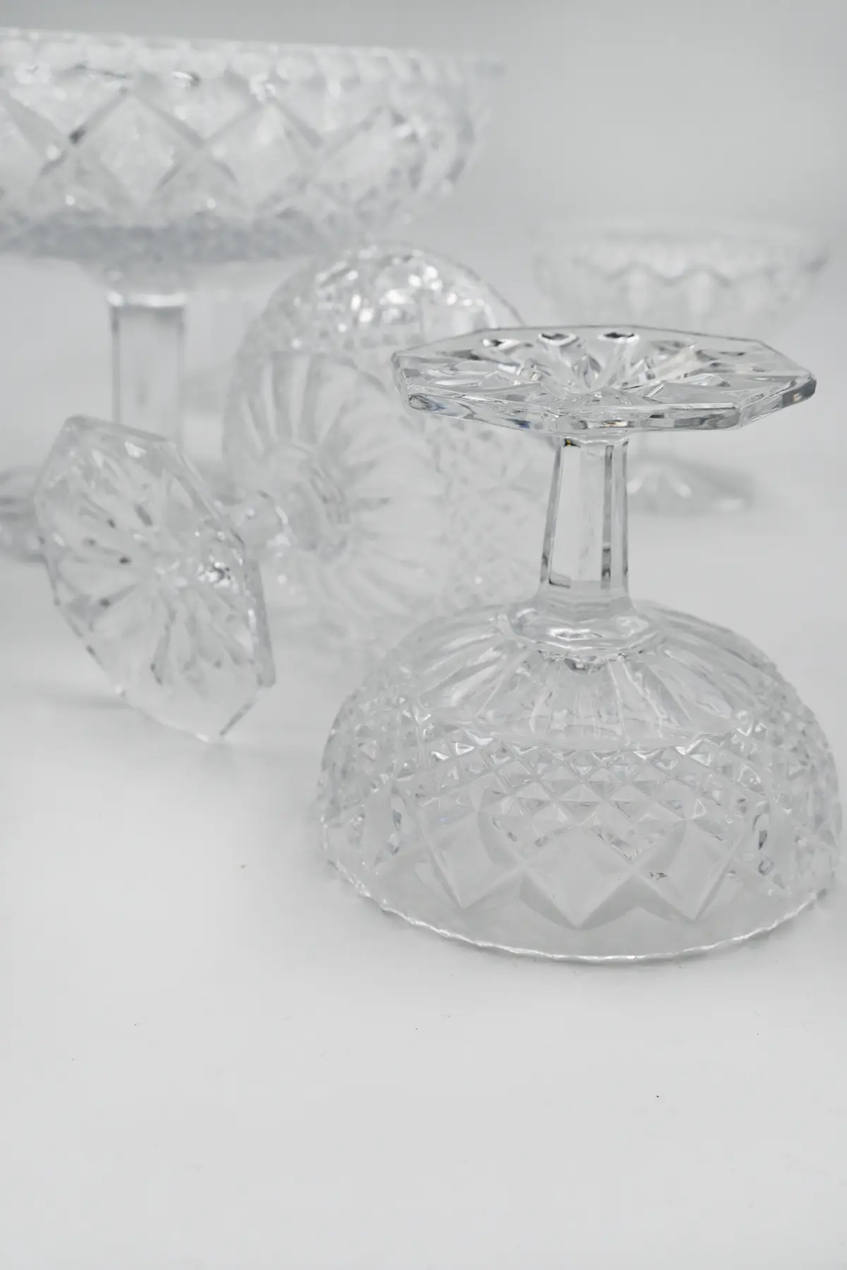 Les services à dessert gagnent en popularité au XIXᵉ siècle avec l’art de recevoir. Les familles utilisent ces coupes pour présenter glaces, fruits ou salades sucrées. Ces pièces créent un effet visuel fort sur la table grâce à leur hauteur et leur brillance. Un service en cristal offre toujours une touche élégante et chaleureuse pendant un repas.