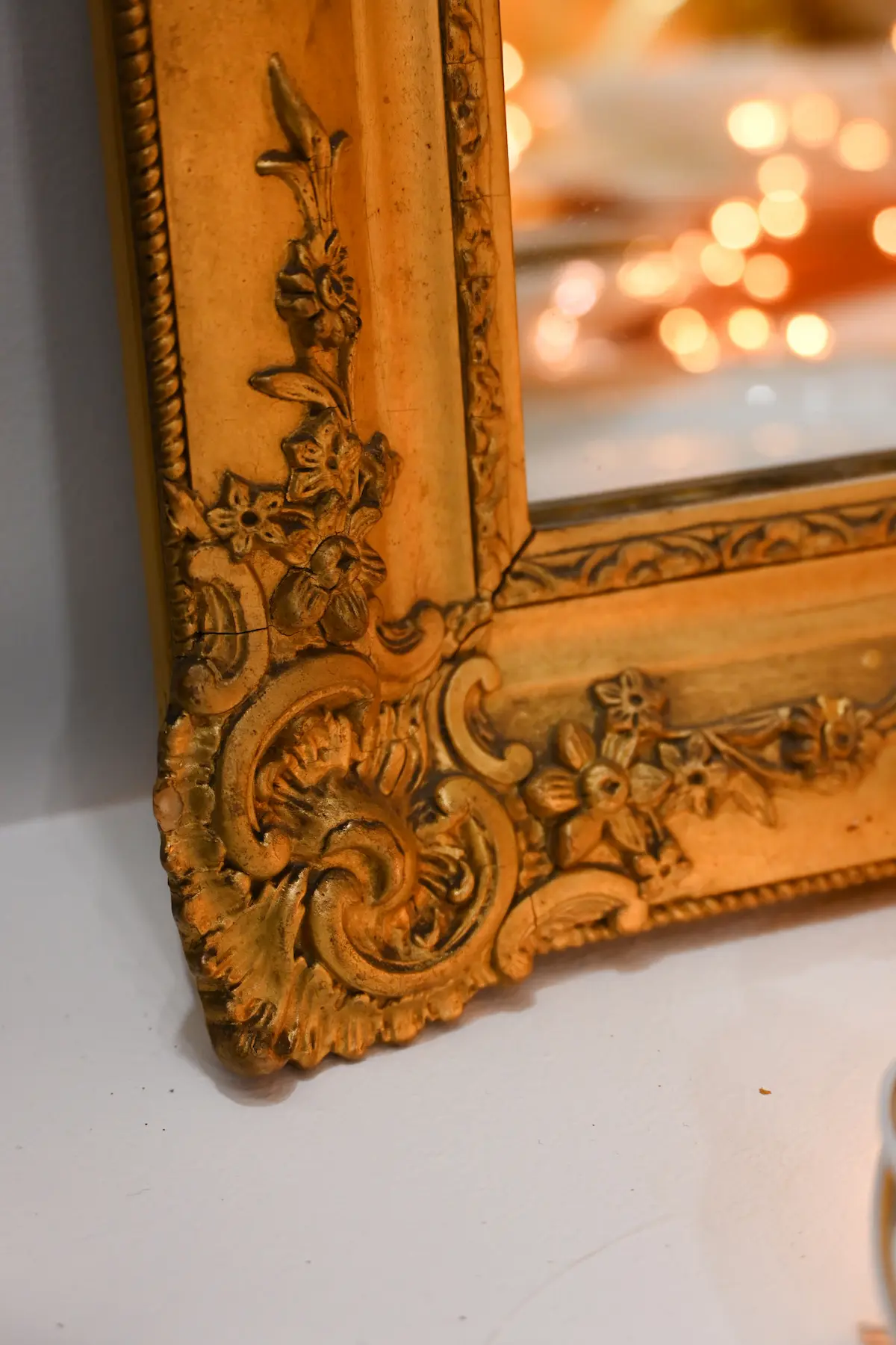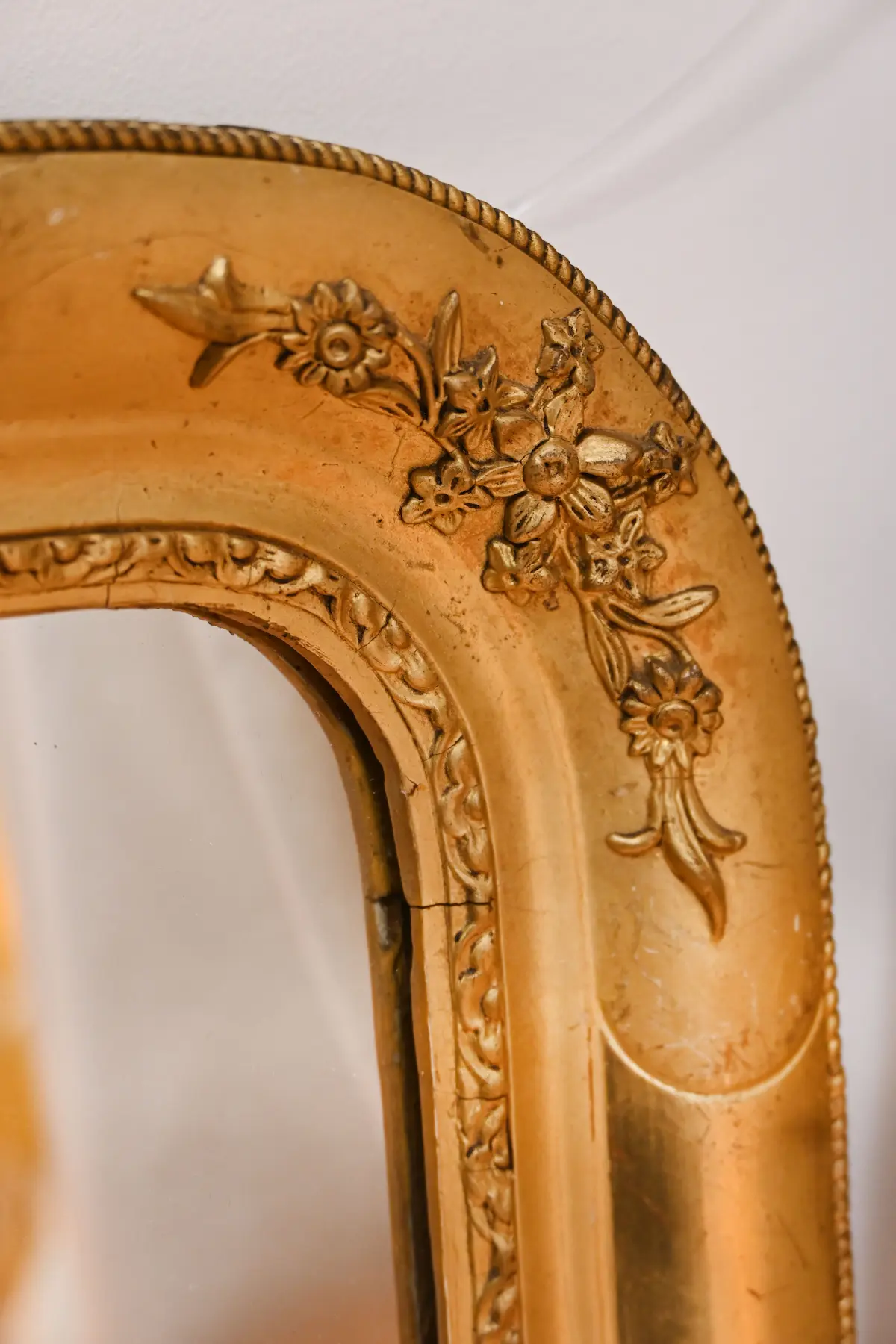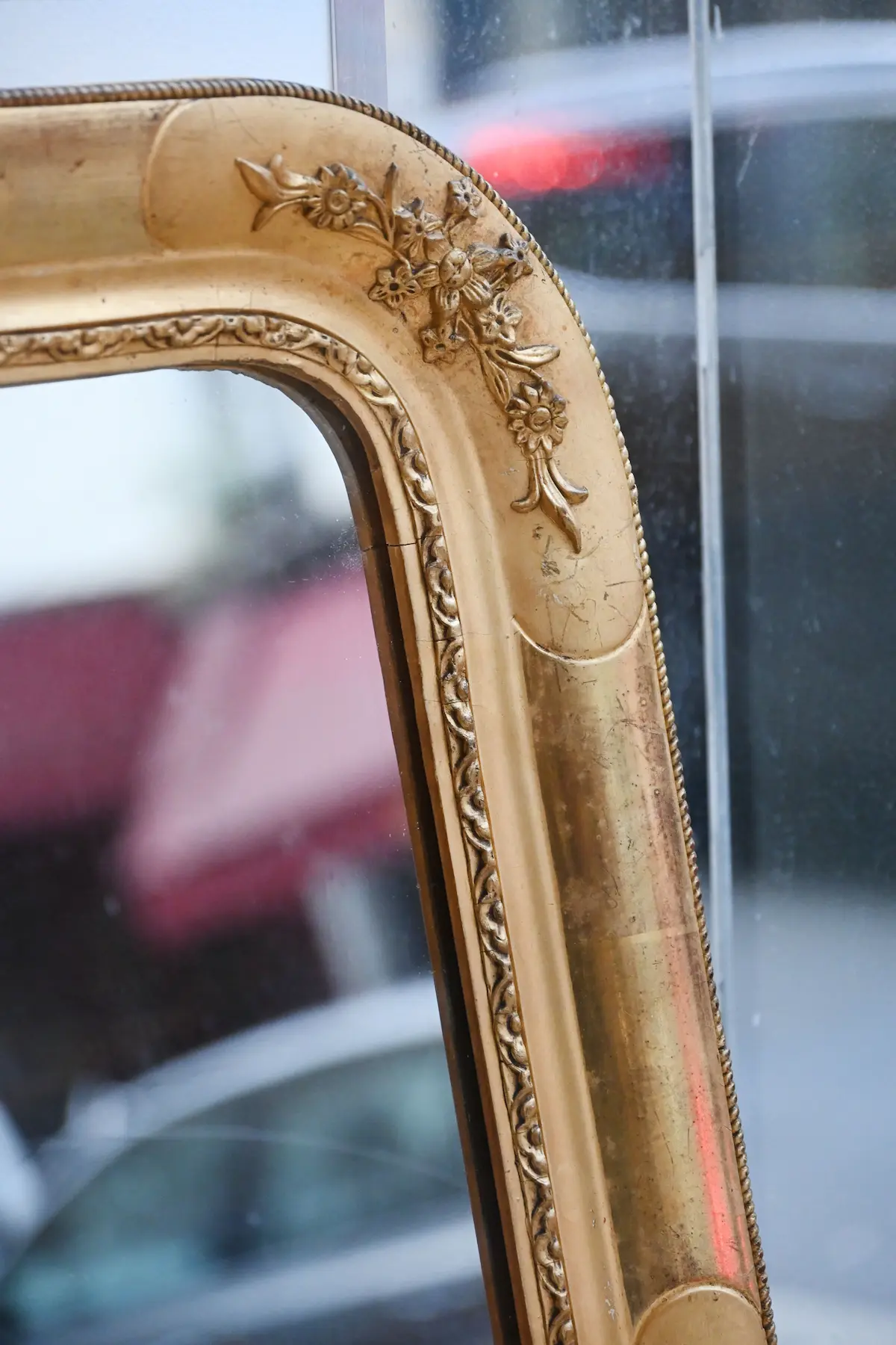 Les artisans sculptent le bois à la main pour obtenir ces détails fins. Ils utilisent des gouges adaptées pour creuser, lisser et rythmer les motifs. Chaque mouvement suit le fil du bois pour éviter les éclats. La dorure se pose ensuite sur un support préparé à l’argile pour plus de profondeur. Cette technique met en valeur les reliefs et donne vie aux fleurs sculptées. Le résultat offre un miroir ancien unique, précis et lumineux.